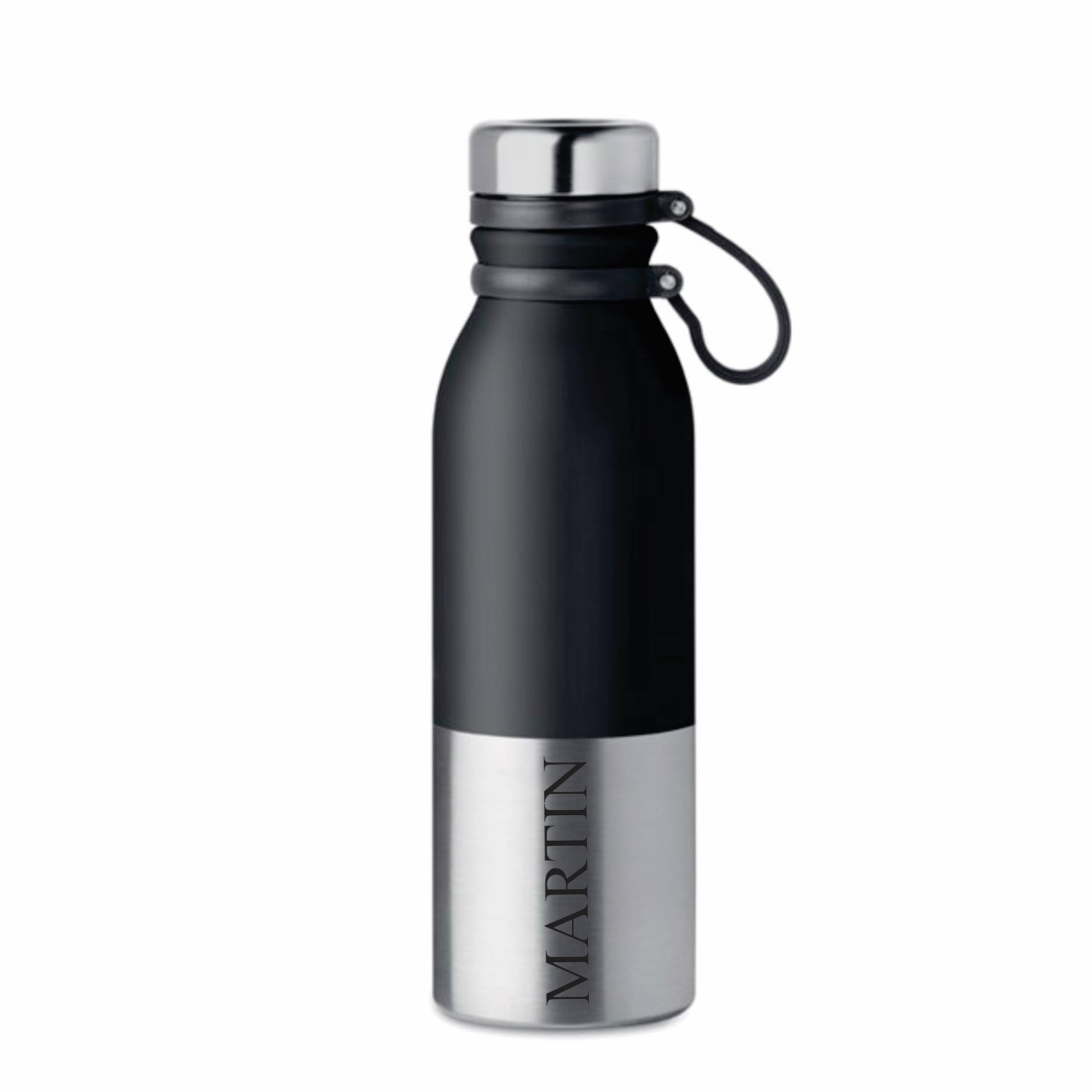 Termo flaška s silikonskim oprijemom z gravuro, 600 ml - ČRNA
